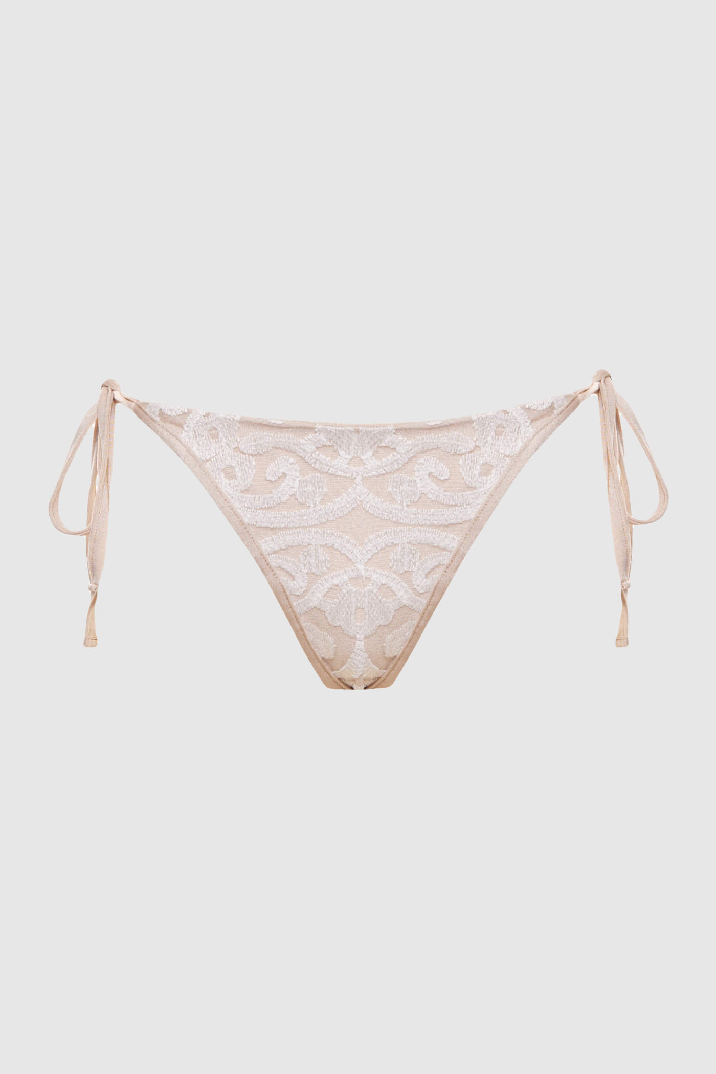 Dół bikini wiązany z koronką i cekinami – Loreen beżowy
