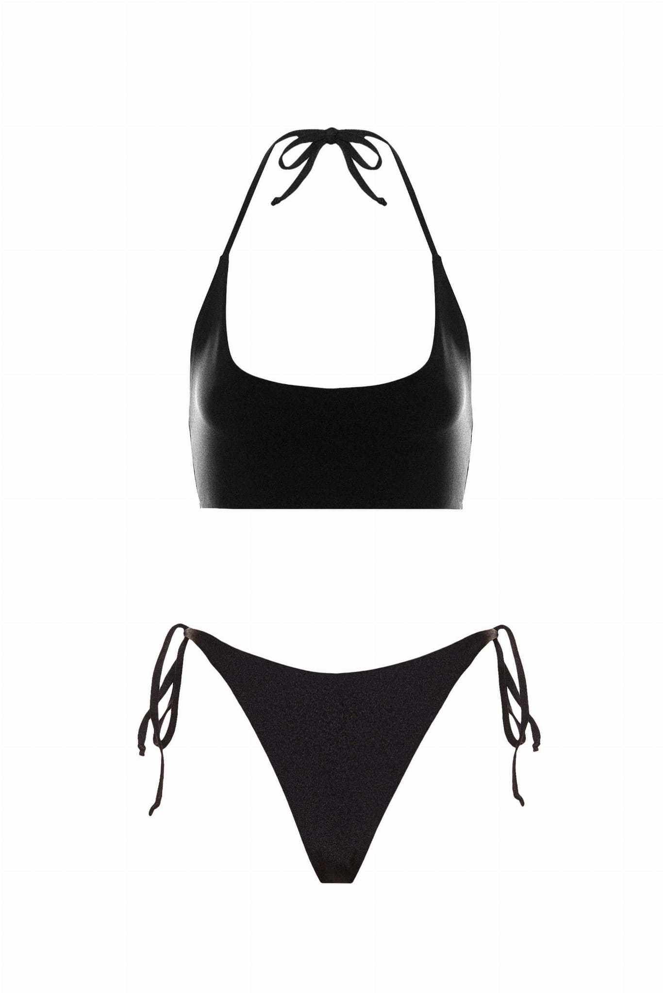 Minimalistyczny, ale niebanalny. Alexis w kolorze głębokiej czerni to propozycja dla kobiet, które kochają ponadczasowe fasony, ale szukają czegoś więcej niż standardowy dół bikini. Wiązania po bokach dodają lekkości i sensualnego charakteru, a lycra premium gwarantuje doskonałe dopasowanie – niezależnie od figury.
