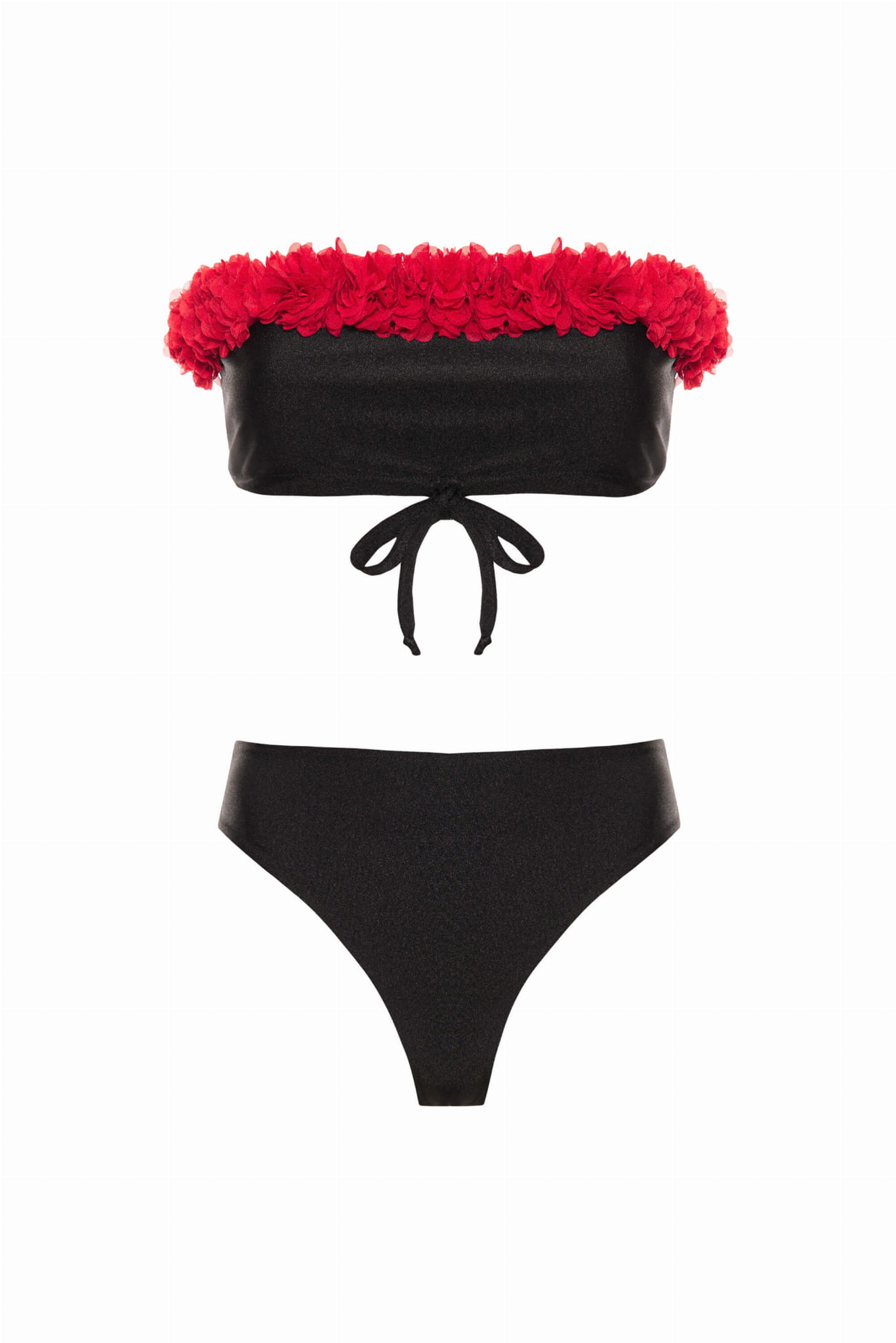 Góra bikini bandeau z kwiatami 3D – Laura Flower czarna