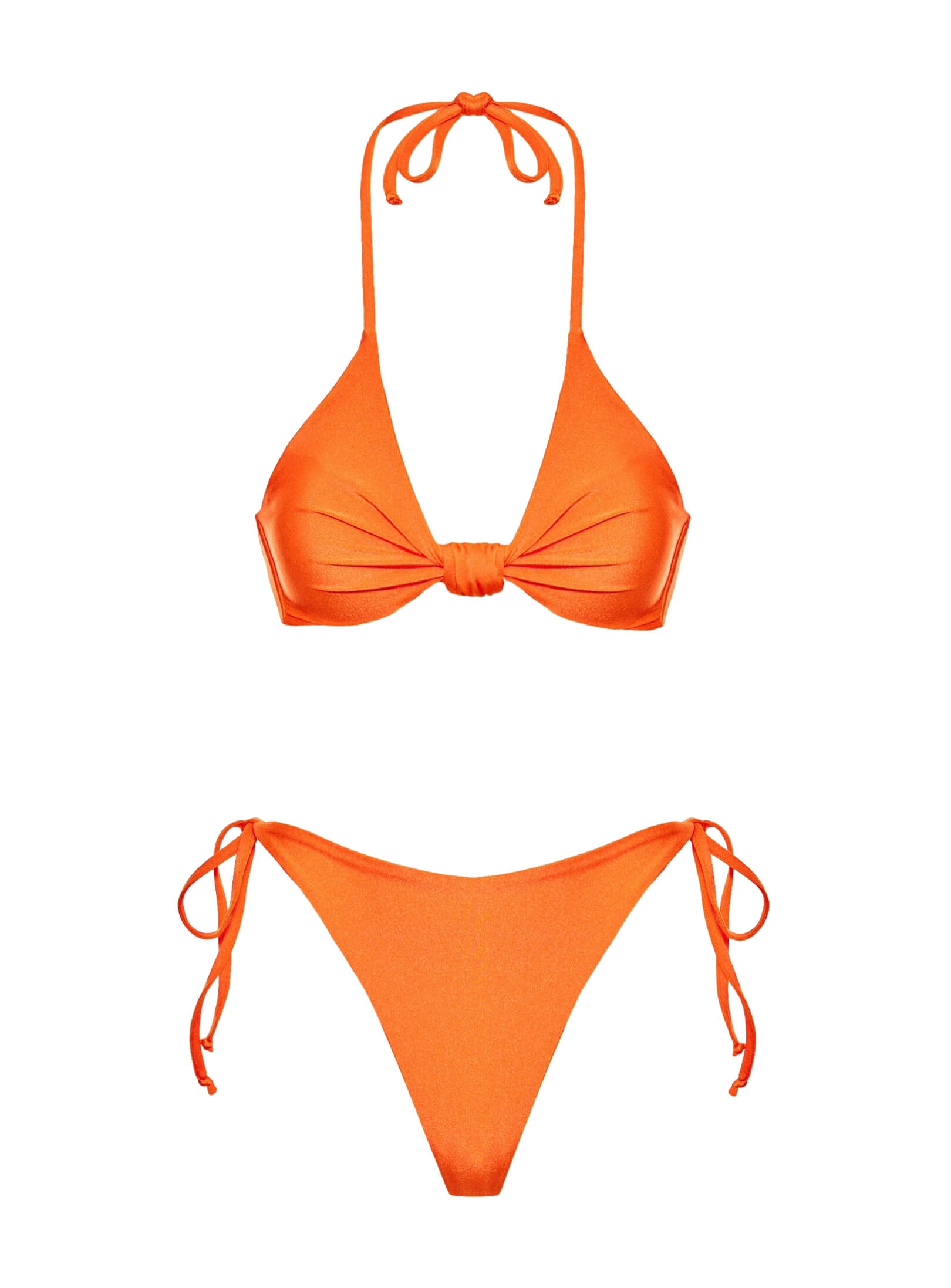 Styl old money, perfekcyjne modelowanie biustu i detal, który przyciąga wzrok – odkryj górę bikini Olivia w słonecznym odcieniu pomarańczy.