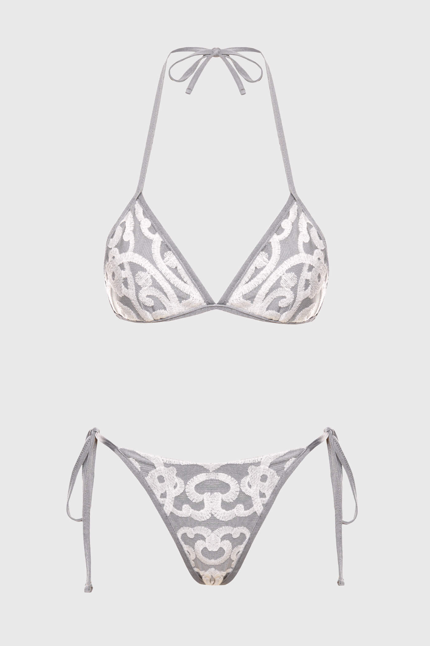 Góra bikini triangle z koronką i cekinami – Loreen popielata