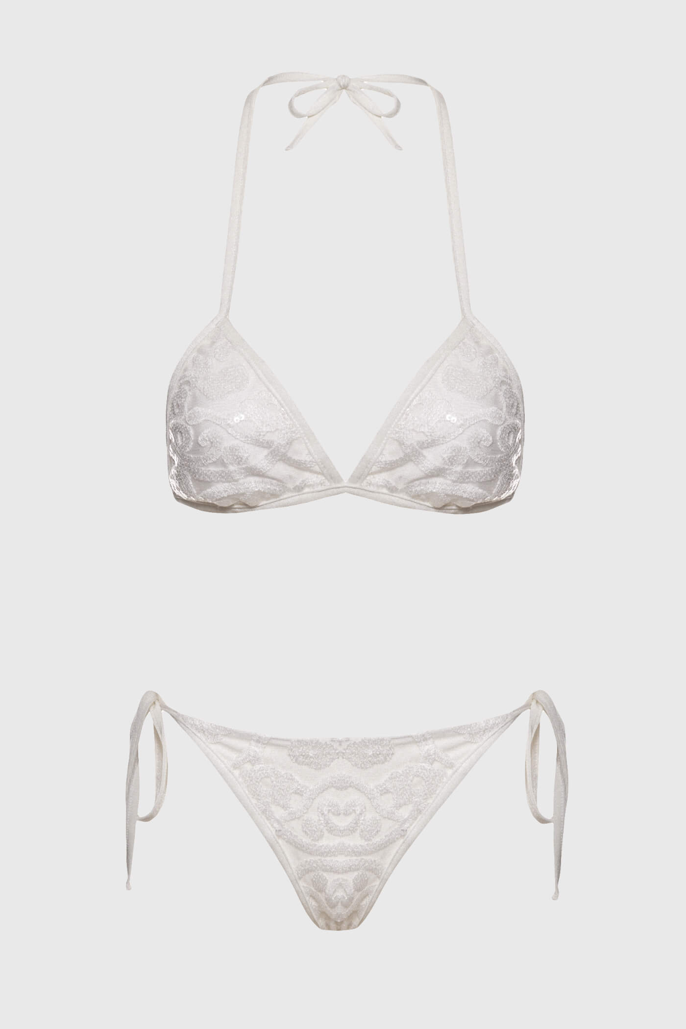 Komplet bikini triangle z koronką i cekinami Loreen ecru – romantyczna elegancja w stylu glamour & boho