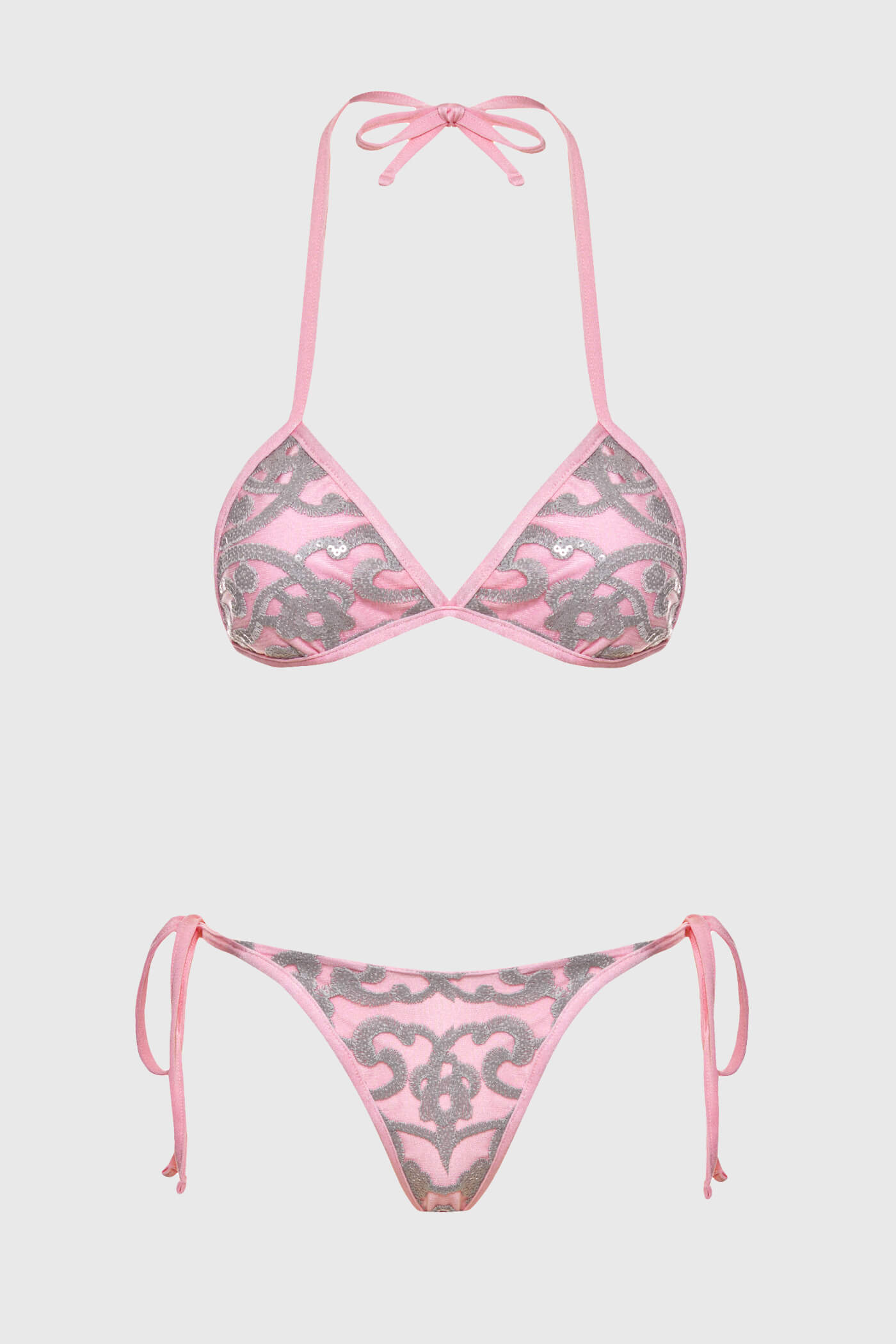 Komplet bikini triangle z koronką i cekinami – Loreen baby pink – dziewczęcy urok i zmysłowy blask